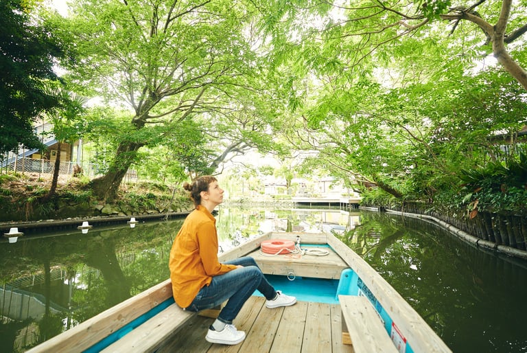 Known as the “Venice of Kyushu,” Yanagawa is a scenic canal town where waterways shape both the landscape and lifestyle. Traditional donkobune boats offer guided cruises through willow-lined canals, providing glimpses of historic residences and beautifully maintained gardens.